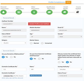 Applicant needs to visit and update the Aadhaar details /linked bank details in the profile. |