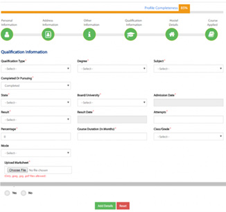 The application has been rejected due to incomplete information. Please raise the issue with the institute/ department. |